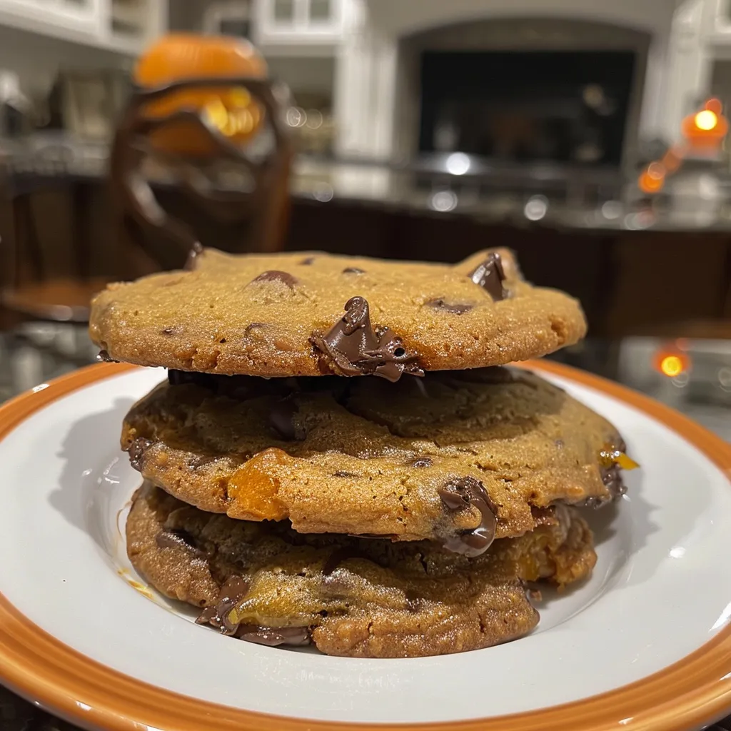 - Homemade pumpkin spice orange chips that give these cookies a festive fall twist.