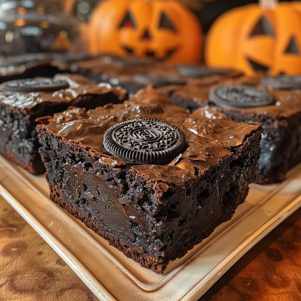 Delight in these rich, fudgy brownies filled with Oreos and topped with crushed cookies for a spooky treat.