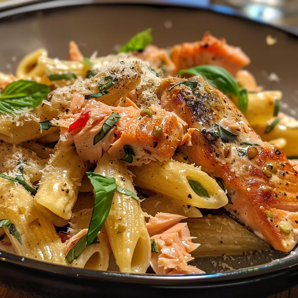 - Finally, add your cooked pasta to the sauce, tossing to combine everything beautifully. Gently fold in the cooked salmon pieces.