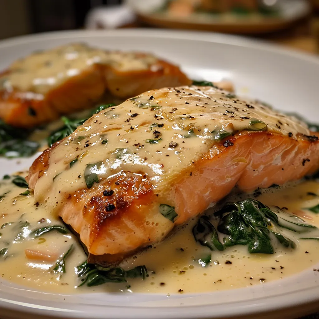 Imagine this: a tender salmon fillet, perfectly seared, nestled in a bed of vibrant, wilted spinach, all enveloped in a rich, creamy sauce that feels like a warm hug. This dish is not just a feast for the eyes; it’s a delightful blend of flavors that’ll make your taste buds dance. Let’s get started on this easy yet impressive weeknight dinner that will leave everyone asking for seconds!