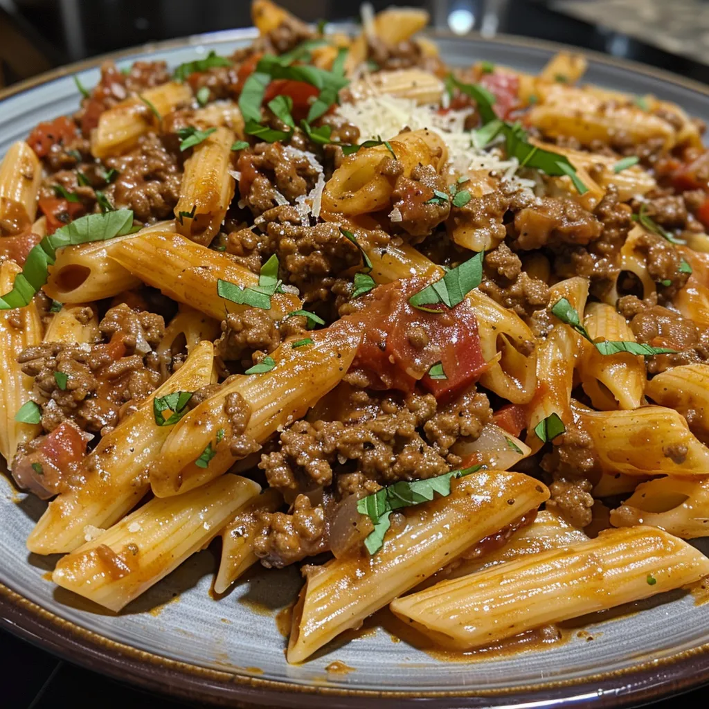 - Add the cooked pasta to the skillet with the beef mixture. Toss until well combined and heated through.