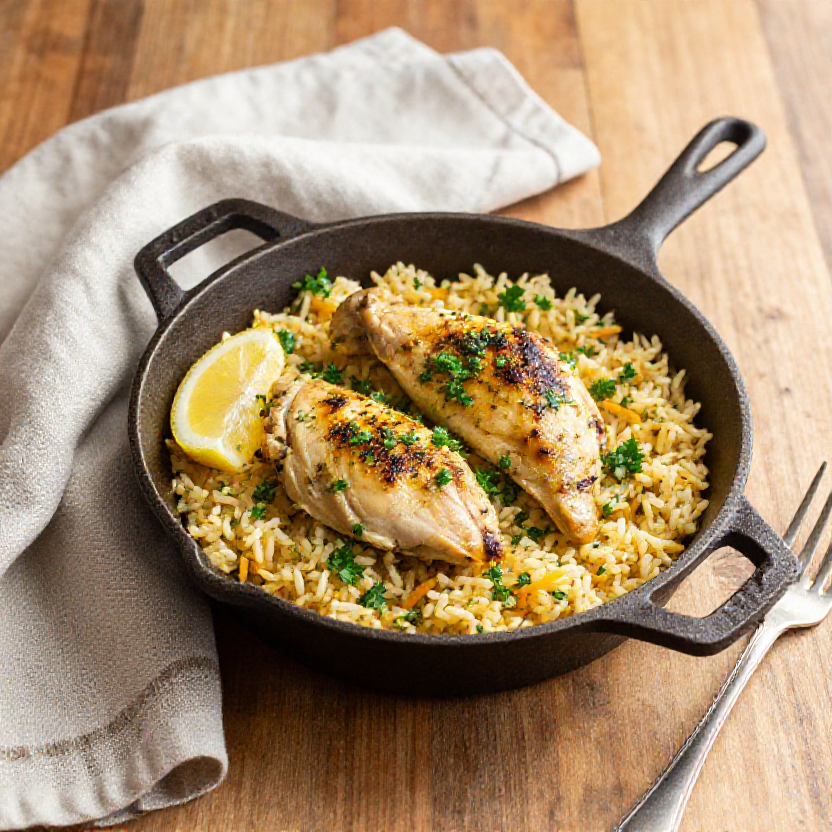 - Serve: Shred the chicken or serve whole over the rice, garnished with fresh parsley.