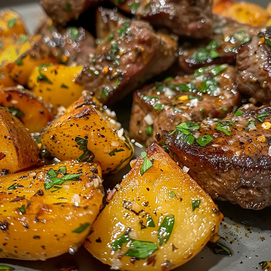 Garlic Butter Steak Bites and Potatoes (Tender & Crispy!)