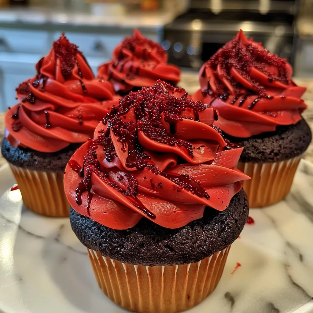 For the filling, I chose raspberry jam for its vibrant color and sweet-tart flavor, which really gives that “blood” effect we want for our vampire theme! The frosting, made from softened butter and powdered sugar, gets a spooky twist with a touch of red food coloring that will make your cupcakes look both festive and fabulous. And if you want to elevate them even more, fresh raspberries make a lovely garnish.