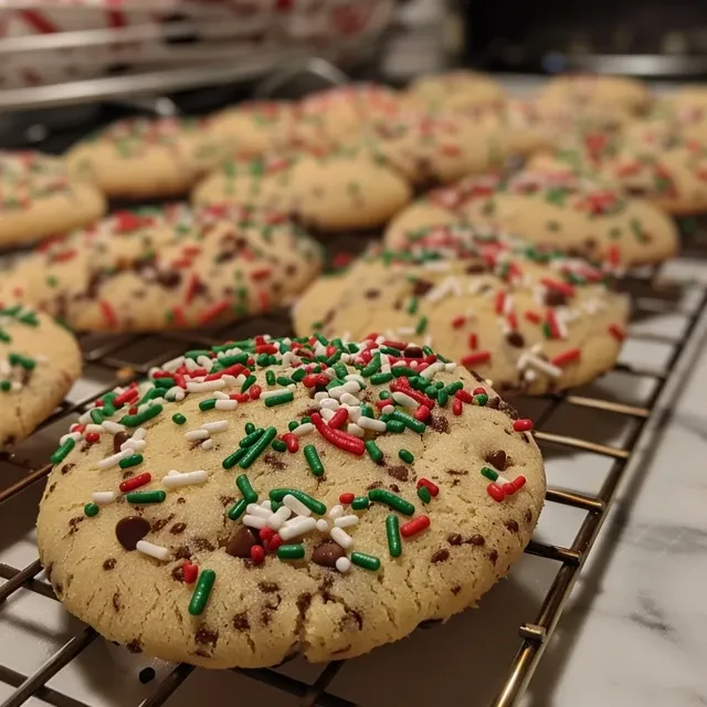 - Fold in the chocolate chips and festive sprinkles, ensuring they are evenly distributed throughout the dough.